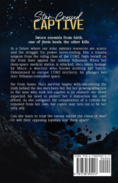 Sworn enemies from birth, one of them heals, the other kills. In a future where our solar system's resources are scarce and the struggle for power never-ending, Nia, a trauma surgeon from the ruling class of the CORE, finds herself on the front lines against the ruthless Tellusians. When her deep-space medical station is attacked, she's taken hostage by Mace, a warrior who knows nothing but battle. Determined to escape CORE territory, he plunges her into Tellusian-controlled space. Far from home, Nia's survival begins with uncovering the truth behind the lies she's been fed. But her growing attraction to the man who took her captive is an obstacle she never expected, his need to protect her a distraction she can't afford. As she navigates the complexities of a culture far removed from her own, her captor may turn out to be her only ally. And when the Tellusian station comes under siege, trusting the enemy might be impossible while their opposing loyalties threaten to tear them apart.