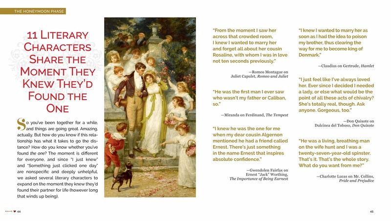 Traversing the mystifying swampland that is today's dating scene requires a guide. Forget your BFF--no one knows the ins and outs of love in all its star-crossed glory quite like characters from the great classics. The hopeless romantic in a Shakespeare play. The charming heroine in a Jane Austen novel. The ill-fated dreamer in pretty much anything by F. Scott Fitzgerald. You'll find sage advice and everything you need to know about romance and relationships--from flirting to the honeymoon phase, rocky roads to domestic bliss--courtesy of all the classic characters we know and love (and some we love to hate).