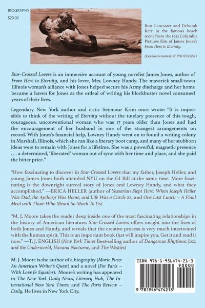 From Lowney Handy's scandalous small-town open marriage to author James Jones's extraordinary apprenticeship with Maxwell Perkins, Star-Crossed Lovers illuminates an unforgettable love story. She was an eccentric small-town self-taught rebel, driven by creative zeal and a non-conformist streak. He was a distressed ex-GI (flat broke, without prospects, damaged by war), 17 years younger than she, consumed by visions of a writer's life. Advocating for Jones's "medical discharge" from the Army in the summer of 1944, Lowney and her husband invited Jones to live and write at their home in Robinson, Illinois. After years of struggle, Jones's From Here to Eternity won the National Book Award and profoundly transformed American literature. The 1953 film adaptation swept the Academy Awards in 1954. Expanding their shared vision of life, the Handys and Jones incorporated a unique writers' colony in 1951 that was funded mostly by Jones's Eternity royalties. This is their odyssey of love, passion, and conflict, which remains exceptional in literary history. "Fascinating story-kept my interest throughout." -OLIVER STONE, Academy Award-winning writer/director " ... The downright surreal story of James Jones and Lowney Handy, and what they accomplished." -ERICA HELLER, author of Yossarian Slept Here and One Last Lunch "Oh, to be young and a writer and finding your way with an exotic older woman! M. J. Moore's Star-Crossed Lovers is an incredible tale...Indispensable!" -LUCIAN K. TRUSCOTT IV, author of Dress Gray, Heart of War, and other novels; Village Voice staff writer; West Point graduate "In today's age of flimsy comic-book characters passing for superheroes, it is life-affirming-hell, it's vital-to recall the red-blooded humanity James Jones poured into his 1951 National Book Award-winning From Here to Eternity. At its core is an iconoclastic love story...all of which Moore soundly spells out in engaging and impressively researched detail." -STEPHEN M. SILVERMAN, author of The Catskills: Its History and How It Changed America; and Dancing on the Ceiling: Stanley Donen and His Movies