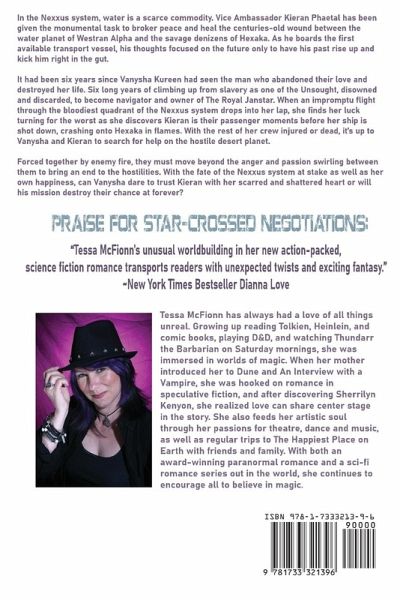 In the Nexxus system, water is a scarce commodity. Vice Ambassador Kieran Phaetal has been given the monumental task to broker peace and heal the century's old wound between the water planet of Westran Alpha and the savage denizens of Hexaka. As he boards the first available transport vessel, his thoughts focused on the future only to have his past rise up and kick him right in the gut. It had been six years since Vanysha Kureen had seen the man who abandoned their love and destroyed her life. Six long years of climbing up from slavery as one of the Unsought, disowned and discarded, to become navigator and owner of The Royal Janstar. When an impromptu flight through the bloodiest quadrant of the Nexxus system drops into her lap, she finds her luck turning for the worst as she discovers Kieran is their passenger moments before her ship is shot down, crashing onto Hexaka in flames. With the rest of her crew injured or dead, it's up to Vanysha and Kieran to search for help on the hostile desert planet. Forced together by enemy fire, they must move beyond the anger and passion swirling between them to bring an end to the hostilities. With the fate of the Nexxus system at stake as well as her own happiness, can Vanysha dare to trust Kieran with her scarred and shattered heart or will his mission destroy their chance at forever?