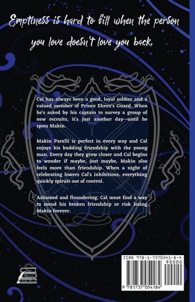 Cal has always been a good, loyal soldier and a valued member of Prince Ehren's Guard. When he's asked by his captain to survey a group of new recruits, it's just another day until he spots Makin. Makin Parelli is perfect in every way and Cal enjoys his budding friendship with the young man. Every day they grow closer and Cal begins to wonder if maybe, just maybe, Makin also feels more than friendship. When a night of celebrating lowers Cal's inhibitions, everything quickly spirals out of control. Ashamed and floundering, Cal must find a way to mend his broken friendship or risk losing Makin forever.