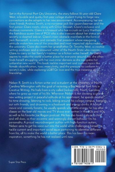 This story follows Claire West, a lovable, quirky, and neurodivergent teen who is just starting college at Port City University, with the goal of becoming a famous fiction writer. She sets out to reunite with her absent grandfather, Dr. Timothy West, who is a creative writing professor and a renowned writer in North Carolina. He has published his legendary book about the only coup d'etat in United States history, inspiring Claire to carry on the West family's tradition. As Claire greatly misses her old high school friends and begins searching for new ones in college, she meets Chloe Stewart, her reclusive and studious roommate, with whom she instantly becomes close friends. They share a strong bond over many things, especially her pet cat and emotional support animal Snowball. On her first day of classes, Claire also befriends a gentlemanly, jock-like upperclassman named Andrew Smith in biology, who then invites her to a party later that night hosted by the best fraternity on campus, called Alpha Gamma Eta. There, Claire comes face-to-face with Lucy Harthan, the fastidious queen bee of Port City University and president of the top sorority Chi Omicron, who takes a fondness for her different personality and suggests they hang out more. Later on, as PCU's welcome week progresses, Claire learns about Lucy's true identity, a closeted lesbian forced to obey society's ideals as the frat president of Alpha Gamma Eta, Jack Romanoff, lusts after her in a pursuit to become the most respected alpha male at the university, all the while asserting his white male privilege upon her in a violent way. As Claire has developed a seemingly hopeless crush on Lucy, she must find a way to keep everything from going wrong, but the journey proves difficult. Having to deal with Jack's misogyny, homophobia, and discrimination against neurodiversity and marginalized groups, as well as her grandfather's authoritarian influence over her, the unpredictability of her new environment, and her past childhood experiences with trauma and bullying in school, Claire wants to make the world a happier and better place for everyone and everything in it, becoming the blazing light in the darkness of the world. This book tackles important and current topics like female objectification, toxic masculinity, the pressure to conform to society's rules, and the true meaning of friendship, among many other things.