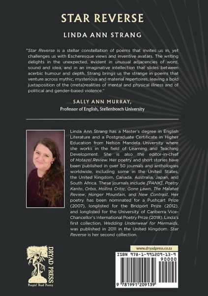 Verbal precision is the best way to describe this compelling and daunting collection, where poetry and all the known demands of writing poetry are constantly deconstructed. In a no-nonsense approach devoid of self-pity, Strang utilises wry acerbic humour coupled with a fine technical skill to debunk commonly held perceptions on an array of topics including femicide and gender-based violence, physical and mental illness/death, childhood and aging, sex and sexuality, and armed conflict and political violence. It is a complex, brilliant volume of poetry blending the intellectual with the intuitive, utilising an array of inter-texts including fairy tales, the tarot, the Bible, and art in various forms, interwoven with primordial wisdoms and mythology.