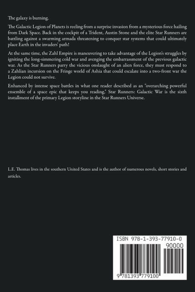 The galaxy is burning. The Galactic Legion of Planets is reeling from a surprise invasion from a mysterious force hailing from Dark Space. Back in the cockpit of a Trident, Austin Stone and the elite Star Runners are battling against a swarming armada threatening to conquer star systems that could ultimately place Earth in the invaders' path! At the same time, the Zahl Empire is maneuvering to take advantage of the Legion's struggles by igniting the long-simmering cold war and avenging the embarrassment of the previous galactic war. As the Star Runners parry the vicious onslaught of an alien force, they must respond to a Zahlian incursion on the Fringe world of Ashia that could escalate into a two-front war the Legion could not survive. Enhanced by intense space battles in what one reader described as an "overarching powerful ensemble of a space epic that keeps you reading," Star Runners: Galactic War is the sixth installment of the primary Legion storyline in the Star Runners Universe.