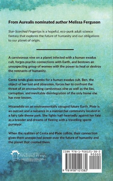 A carnivorous vine on a planet infected with a human exodus cult, forges psychic connections with Earth, and bestows an unsuspecting group of women with the power to heal or destroy the remnants of humanity. STAR-SCORCHED FINGERTIPS is an ultimately hopeful, eco-punk adult science fantasy that explores the future of humanity and our obligations to our planet of origin. If Annihilation and Day of the Triffids met up with The Handmaid's Tale to traverse space while tripping on mushrooms, STAR-SCORCHED FINGERTIPS would be their queer, rebellious love child.
