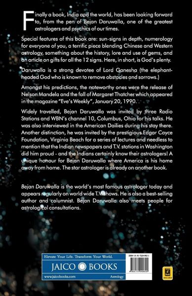 NEW ENLARGED EDITION Finally a book, India and the world, has been looking forward to, from the pen of Bejan Daruwalla, one of the greatest astrologers and psychics of our times. Special features of this book are: sun-signs in depth, numerology for everyone of you, a terrific piece blending Chinese and Western astrology, something about the history, lore and use of gems, and an article on gifts for all the 12 signs. Here, in short, is God's plenty. Daruwalla is a strong devotee of Lord Ganesha (the elephant-headed God who is known to remove obstacles and sorrows.) Amongst his predictions, the noteworthy ones were the release of Nelson Mandela and the fall of Margaret Thatcher which appeared in the magazine "Eve's Weekly", January 20, 1990. Widely travelled, Bejan Daruwalla was invited by three Radio Stations and WBN's channel 10, Columbus, Ohio for his talks. He was also interviewed in the American Dailies during his stay there. Another distinction, he was invited by the prestigious Edgar Cayce Foundation, Virginia Beach for a series of lectures and needless to mention that the Indian newspapers and T.V. stations in Washington did him proud - and the Indians certainly know their astrologers! A unique honour for Bejan Daruwalla where America is his home away from home. The star astrologer is already on another book.