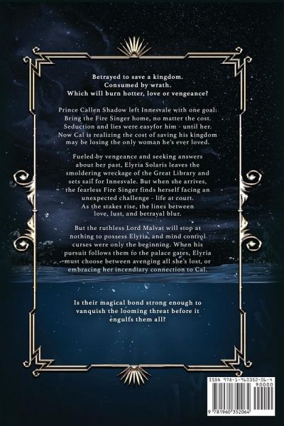 Betrayed to save a kingdom. Consumed by wrath. Which will burn hotter, love or vengeance? Prince Callen Shadow left Innesvale with one goal: Bring the Fire Singer home, no matter the cost. Seduction and lies were easy for him - until her. Now Cal is realizing the cost of saving his kingdom may be losing the only woman he's ever loved. Fueled by vengeance and seeking answers about her past, Elyria Solaris leaves the smoldering wreckage of the Great Library and sets sail for Innesvale. But when she arrives, the fearless Fire Singer finds herself facing an unexpected challenge - life at court. As…mehr