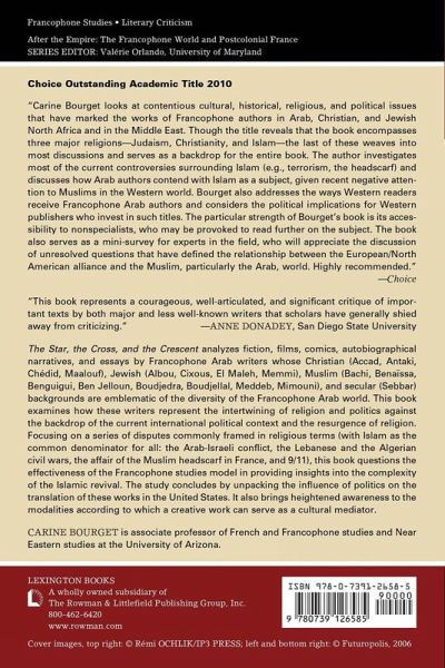 The Star, the Cross, and the Crescent examines how Francophone writers from the Maghreb and the Near East represent the intertwining of religion and politics in various disputes, such as the Arab-Israeli conflict, the Lebanese and Algerian civil wars, the affair of the Muslim headscarf in France, and 9/11. It analyzes fiction, films, comic books, autobiographical narratives, and essays from the Arab world against the backdrop of the current international political context of Islamic fundamentalism and Western prejudices against Islam.
