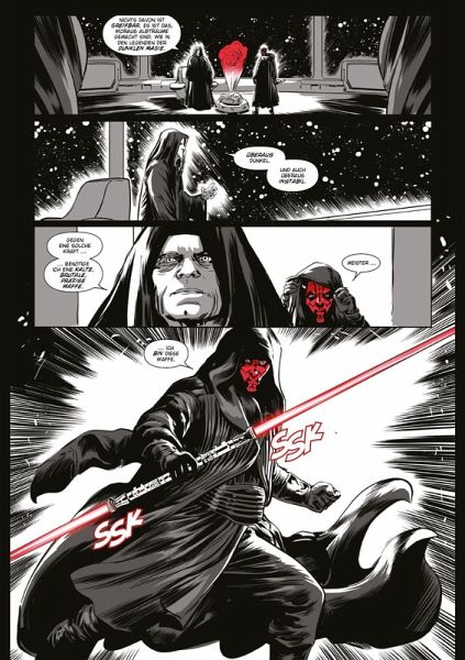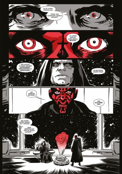 DARTH MAUL IST ZURÜCK!Wer könnte sich besser in die düstere "Schwarz, Weiß & Rot"-Serie einreihen als Darth Maul, der berüchtigte Sith-Lord mit den schwarzen Tätowierungen auf seiner roten Haut? Und deshalb bekommt Maul nach Darth Vader nun auch seine eigene schaurige Anthologie. Unter anderem schickt Imperator Palpatine seinen Schüler aus, um auf einem Gefängnisschiff nach dem Rechten zu sehen, das eine Fehlfunktion hat - und eine gefährliche Sekte transportiert. Was er an Bord vorfindet, ist der Stoff, aus dem Albträume sind!Dieser Band enthält US-STAR WARS: Darth Maul - Black, White & Red #1-4