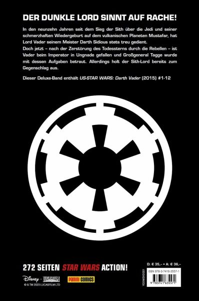 DER DUNKLE LORD SINNT AUF RACHE! In den neunzehn Jahren seit dem Sieg der Sith über die Jedi und seiner schmerzhaften Wiedergeburt auf dem vulkanischen Planeten Mustafar, hat Lord Vader seinem Meister Darth Sidious stets treu gedient. Doch jetzt - nach der Zerstörung des Todessterns durch die Rebellen - ist Vader beim Imperator in Ungnade gefallen und Großgeneral Tagge wurde mit dessen Aufgaben betraut. Allerdings holt der Sith-Lord bereits zum Gegenschlag aus. Dieser Deluxe-Band enthält US-STAR WARS: Darth Vader (2015) #1-12