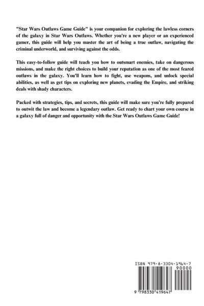 "Star Wars Outlaws Game Guide" is your companion for exploring the lawless corners of the galaxy in Star Wars Outlaws. Whether you're a new player or an experienced gamer, this guide will help you master the art of being a true outlaw, navigating the criminal underworld, and surviving against the odds. This easy-to-follow guide will teach you how to outsmart enemies, take on dangerous missions, and make the right choices to build your reputation as one of the most feared outlaws in the galaxy. You'll learn how to fight, use weapons, and unlock special abilities, as well as get tips on exploring new planets, evading the Empire, and striking deals with shady characters. Packed with strategies, tips, and secrets, this guide will make sure you're fully prepared to outwit the law and become a legendary outlaw. Get ready to chart your own course in a galaxy full of danger and opportunity with the Star Wars Outlaws Game Guide!