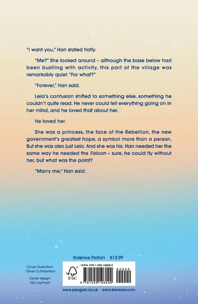 You are cordially invited to the wedding of Princess Leia Organa and Han Solo. The Death Star is destroyed. Darth Vader is dead. The Empire is desolated. But on the forest moon of Endor, amongst the chaos of a changing galaxy, time stands still for a princess and her scoundrel. After being frozen in carbonite, then risking everything for the Rebellion, Han is eager to stop living his life for other people. He and Leia have earned their future together, a thousand times over. And when he proposes to Leia, it's the first time in a long time he's had a good feeling about this. For Leia, a lifetime of fighting doesn't truly seem over. There is work still to do, penance to pay for the dark secret she now knows runs through her veins. Her brother, Luke, is offering her that chance -- one that comes with family and the promise of the Force. But when Han asks her to marry him, Leia finds her answer immediately on her lips . . . Yes. But happily ever after doesn't come easily. As soon as Han and Leia depart their idyllic ceremony on Endor for their honeymoon, they find themselves on the grandest and most glamorous stage of all: the Halcyon, a luxury vessel on a very public journey to the most wondrous worlds in the galaxy. Their marriage, and the peace and prosperity it represents, is a lightning rod for everyone in the galaxy -- including Imperial remnants still clinging to power. Facing their most desperate hour, the soldiers of the Empire have dispersed across the galaxy, retrenching on isolated worlds vulnerable to their influence. As the Halcyon travels from world to world, one thing becomes abundantly clear: The war is not over. But as danger draws closer, Han and Leia find that they fight their best battles not alone but as husband and wife.