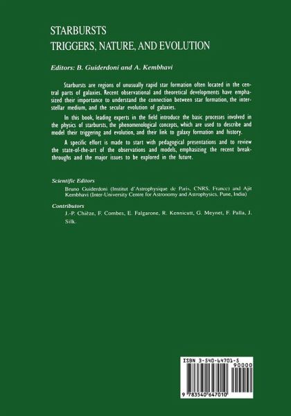 Starbursts are regions of unusually rapid star formation often located in the central parts of galaxies. Recent observational and theoretical developments have emphasized their importance to understand the connection between star formation, the interstellar medium, and the secular evolution of galaxies. In this book, leading experts in the field introduce the basic processes involved in the physics of starbursts, the phenomenological concepts which are used to describe and model their triggering and evolution, and their link to galaxy formation and history. A specific effort is made to start with pedagogical presentations and to review the state-of-the art of the observations and models, emphasizing the recent breakthroughs and the major issues to be explored in the future.