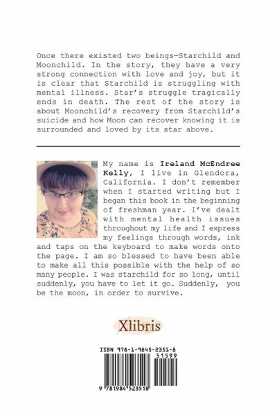 Once there existed two beingsStarchild and Moonchild. In the story, they have a very strong connection with love and joy, but it is clear that Starchild is struggling with mental illness. Stars struggle tragically ends in death. The rest of the story is about Moonchilds recovery from Starchilds suicide and how Moon can recover knowing it is surrounded and loved by its star above.