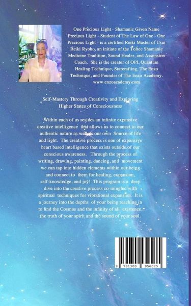 Author One Precious Light - Shamanic Given Name Precious Light - Student of The Law of One - One Precious Light - is a certified Reiki Master of Usui Reiki Ryoho, an initiate of the Toltec Shamanic Medicine Tradition, Sound Healer, and Ascension Coach.¿ She is the creator of OPL Quantum Healing Technique, Starcrafting, The Enzo Technique, and Founder of The Enzo Academy. www.enzoacademy.com Self-Mastery Through Creativity and Exploring Higher States of Consciousness Within each of us resides an infinite expansive creative intelligence that allows us to connect to our authentic nature as well as our own Source of life and light. The creative process is one of expansive heart based intelligence that exists outside of our conscious awareness. Through the process of writing, drawing, painting, dancing, and movement we can tap into hidden elements within our being and connect to them for healing, expansion, self-knowledge, and joy! This program is a deep dive into the creative process co-mingled with spiritual techniques for vibrational expansion. It is a journey into the depths of your being reaching in to find the Cosmos and the infinity of all existence, the truth of your spirit and the sound of your soul.