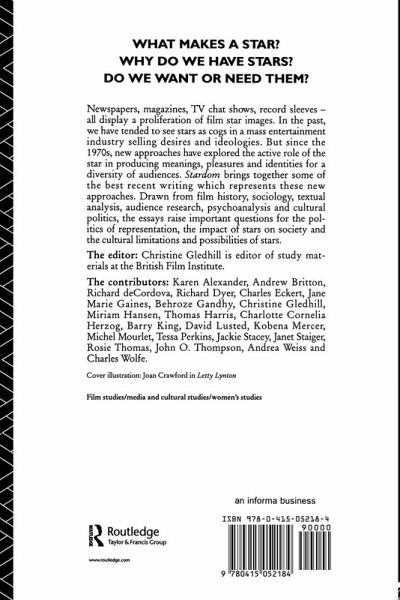 In the past stars have been studied as cogs in a mass entertainment industry selling desires and ideologies. But since the 1970s, new approaches have reopened debate, as film and cultural studies try to account for the active role of the star in producing meanings, pleasures, and identites for a diversity of audiences. Stardom brings together for the first time some of the major writing of the last decade which seeks to understand the phemomenon of stars and stardom. Gathered under four headings - The System, Stars and Society, Performers and Signs, Desire and Politics - these essays represent a range of approaches drawn from film history, sociolgy, textual analysis, audience research, psychoanalysis, and cultural politics. They raise important issues about the politics of representation and the cultural limitations and possibilities of stars.
