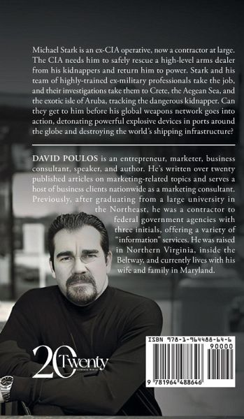 Michael Stark is an ex-CIA operative, now a contractor at large. The CIA needs him to safely rescue a high-level arms dealer from his kidnappers and return him to power. Stark and his team of highly-trained ex-military professionals take the job, and their investigations take them to Crete, the Aegean Sea, and the exotic isle of Aruba, tracking the dangerous kidnapper. Can they get to him before his global weapons network goes into action, detonating powerful explosive devices in ports around the globe and destroying the world's shipping infrastructure? DAVID POULOS is an entrepreneur, marketer, business consultant, speaker, and author. He's written over twenty published articles on marketing-related topics and serves a host of business clients nationwide as a marketing consultant. Previously, after graduating from a large university in the Northeast, he was a contractor to federal government agencies with three initials, offering a variety of "information" services. He was raised in Northern Virginia, inside the Beltway, and currently lives with his wife and family in Maryland.