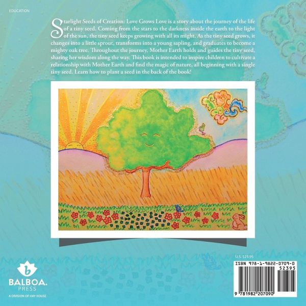 Starlight Seeds of Creation: Love Grows Love is a story about the journey of the life of a tiny seed. Coming from the stars to the darkness inside the earth to the light of the sun, the tiny seed keeps growing with all its might. As the tiny seed grows, it changes into a little sprout, transforms into a young sapling, and graduates to become a mighty oak tree. Throughout the journey, Mother Earth holds and guides the tiny seed, sharing her wisdom along the way. This book is intended to inspire children to cultivate a relationship with Mother Earth and find the magic of nature, all beginning with a single tiny seed. Learn how to plant a seed in the back of the book!