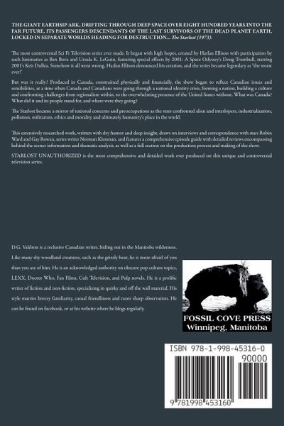 THE GIANT EARTHSIP ARK, DRIFTING THROUGH DEEP SPACE OVER EIGHT HUNDRED YEARS INTO THE FAR FUTURE, ITS PASSENGERS DESCENDANTS OF THE LAST SURVIVORS OF THE DEAD PLANET EARTH, LOCKED IN SEPARATE WORLDS HEADING FOR DESTRUCTION... The Starlost (1973). The most controversial Sci Fi Television series ever made. It began with high hopes, created by Harlan Ellison with participation by such luminaries as Ben Bova and Ursula K. LeGuin, featuring special effects by 2001: A Space Odyssey's Doug Trumbull, starring 2001's Keir Dullea. Somehow it all went wrong, Harlan Ellison denounced his creation, and the series became legendary as "the worst ever!' But was it really? Produced in Canada, constrained physically and financially, the show began to reflect Canadian issues and sensibilities, at a time when Canada and Canadians were going through a national identity crisis, forming a nation, building a culture and confronting challenges from regionalism within, to the overwhelming presence of the United States without. What was Canada? What did it and its people stand for, and where were they going? The Starlost became a mirror of national concerns and preoccupations as the stars confronted alien and interlopers, industrialization, pollution, militarism, ethics and morality and ultimately humanity's place in the world. This extensively researched work, written with dry humor and deep insight, draws on interviews and correspondence with stars Robin Ward and Gay Rowan, series writer Norman Klenman, and features a comprehensive episode guide with detailed reviews encompassing behind the scenes information and thematic analysis, as well as a full section on the production process and making of the show. STARLOST UNAUTHORIZED is the most comprehensive and detailed work ever produced on this unique and controversial television series.