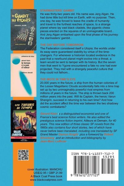 STARMASTERS’ GAMBIT: He was thirty-two years old. His name was Jerg Algan. He had done little but kill time on Earth, with no purpose. Then, one day, he was forced to leave the cradle of humanity and travel to the furthest reaches of space, to a strange planet where lay vast black citadels, like gigantic chess pieces erected on the squares of an unimaginable board... And Jerg Algan embarked upon the final phase of his journey: the starmasters’ gambit... THE DAY BEFORE TOMORROW: The Federation considered itself a Utopia; the worlds under its sway were guaranteed stability by virtue of the time-changers. For whenever a historian located evidence in the past that a newfound planet might evolve into a threat, a team would be sent to tamper with its history. But the seven men that went to Ygone encountered a fate no one had ever projected. They met with a strangely peaceful culture they could not fathom... THE MOTE IN TIME’S EYE: 20,000 years in the future, a ship from the human colonies of the Lesser Magellanic Clouds accidentally falls into a time trap set up by two unimaginably powerful rival empires from millions of years in the future. The ship is thrown back 200 million years into the past. Will its Captain, the heroic Varun Shangrin, succeed in returning to his own time? And how did the accident affect the time war between the two shadowy cosmic combatants? Gérard Klein is a distinguished economist and one of France’s best science fiction writers. He also edited the prestigious science fiction imprint, Ailleurs et Demain, for 40 years. This new edition of three classic SF novels from the 1960s also contains four short stories, two of which have never before been translated, including one translated by SF Grand Master Damon Knight, plus a foreword by Robert Silverberg, and an introduction and bibliography by Jean-Marc Lofficier.