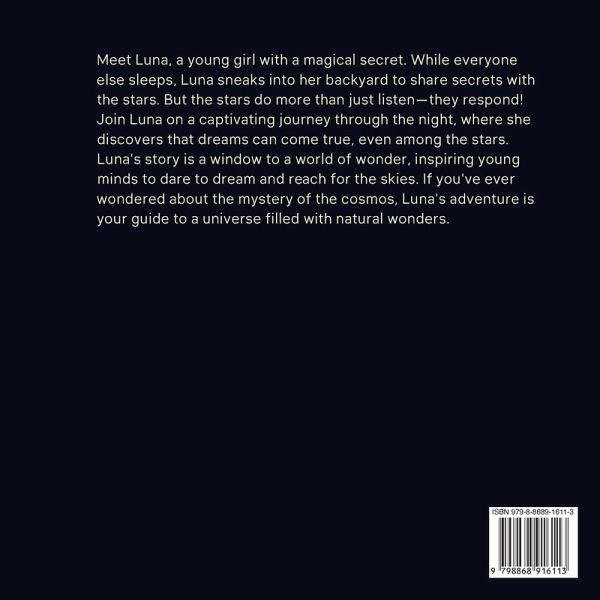 Meet Luna, a young girl with a magical secret. While everyone else sleeps, Luna sneaks into her backyard to share secrets with the stars. But the stars do more than just listen-they respond! Join Luna on a captivating journey through the night, where she discovers that dreams can come true, even among the stars. Luna's story is a window to a world of wonder, inspiring young minds to reach for the skies. If you've ever wondered about the magic of the cosmos, Luna's adventure is your guide to a universe filled with natural wonders.