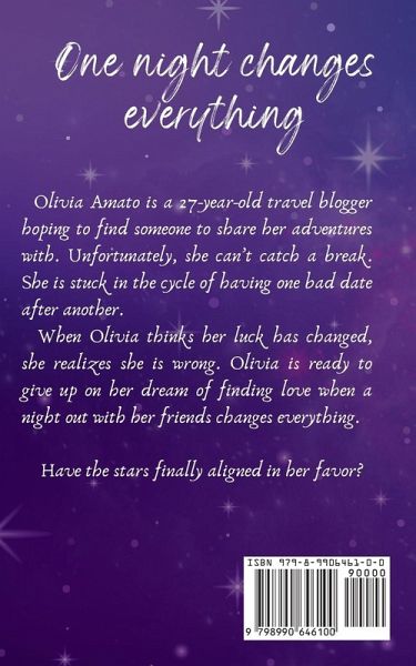 Olivia Amato is a 27-year-old travel blogger hoping to find someone to share her adventures with. Unfortunately, she can't catch a break. She is stuck in the cycle of having one bad date after another. When Olivia thinks her luck has changed, she realizes she is wrong. Olivia is ready to give up on her dream of finding love when a night out with her friends changes everything. Have the stars finally aligned in her favor?