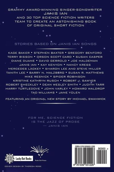Janis Ian and 30 top science fiction writers team up to create an astonishing book of original short fiction. STARS is a huge anthology in both volume and talent. Each story, available only here, is based on a Janis Ian song that meant something special to the author, who then wrote the story expressly for STARS, creating a meld of jazz, prose and science fiction found nowhere else -a treasure trove for fans of both SF and Janis Ian! Also, this edition of STARS features an original new story by Michael Swanwick, "For I Have Lain Me Down on The Stone of Loneliness and I'll Not Be Back Again"…mehr
