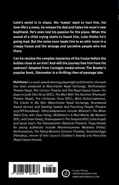 Luke's world is in chaos. His 'mates' want to hurt him, his love-life's a mess, he misses his dad and hates his mum's new boyfriend. He's even lost his passion for piano. When the sound of a child crying starts to haunt him, Luke thinks he's going mad. But the noise soon leads him to an attic room in a creepy house and the strange and secretive people who live there.Can he resolve the complex mysteries of the house before the bullies close in on him? And will the journey free him from his sadness? Adapted from Carnegie medal-winner Tim Bowler's popular book, Starseeker is a thrilling rites-of-passage tale.