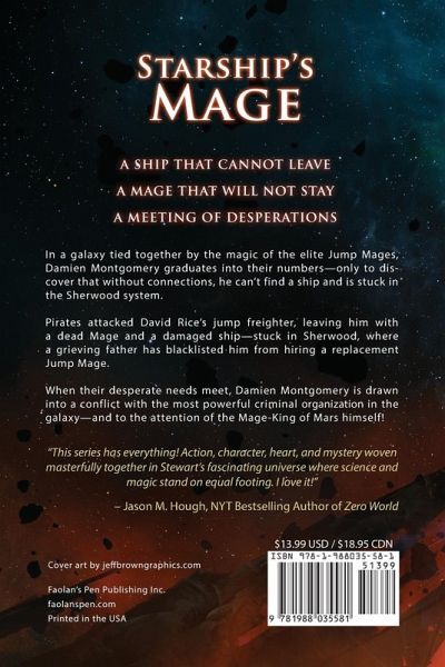 A ship that cannot leave A Mage that will not stay A meeting of desperations In a galaxy tied together by the magic of the elite Jump Mages, Damien Montgomery graduates into their numbers-only to discover that without connections, he can't find a ship and is stuck in the Sherwood system. Pirates attacked David Rice's jump freighter, leaving him with a dead Mage and a damaged ship-stuck in Sherwood, where a grieving father has blacklisted him from hiring a replacement Jump Mage. When their desperate needs meet, Damien Montgomery is drawn into a conflict with the most powerful criminal organization in the galaxy-and to the attention of the Mage-King of Mars himself!