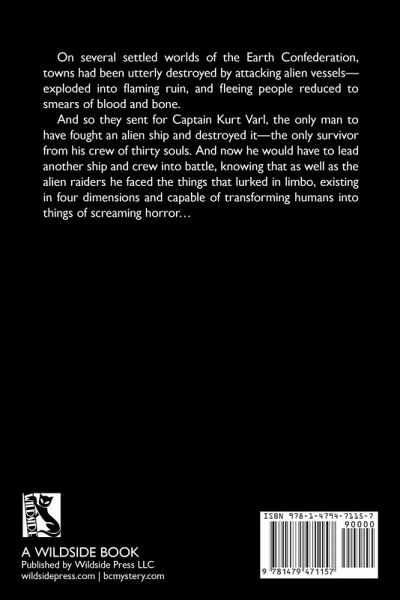 On several settled worlds of the Earth Confederation, towns had been utterly destroyed by attacking alien vessels-exploded into flaming ruin, and fleeing people reduced to smears of blood and bone. And so they sent for Captain Kurt Varl, the only man to have fought an alien ship and destroyed it-the only survivor from his crew of thirty souls. And now he would have to lead another ship and crew into battle, knowing that as well as the alien raiders he faced the things that lurked in limbo, existing in four dimensions and capable of transforming humans into things of screaming horror...