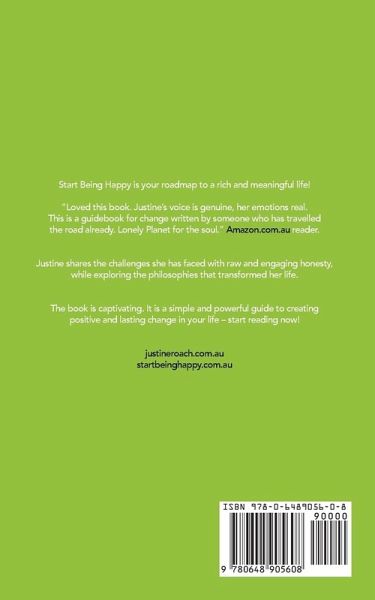 Start Being Happy is your roadmap to a rich and meaningful life! Justine Roach, successful business woman, wife, and mother, shares her triumphant emotional and spiritual journey, while giving you the tools to face your fears and allow yourself to heal from the inside out. Through her candid and open-hearted approach, you too will be inspired to journey from struggle to empowerment. Say YES to a new life filled with joy and happiness. Discover this simple and powerful guide to creating positive and lasting change in your life - start reading now! "Loved this book. Justine's voice is genuine, her emotions real. This is a guidebook for change written by someone who has travelled the road already. Lonely Planet for the soul." Amazon Reviewer