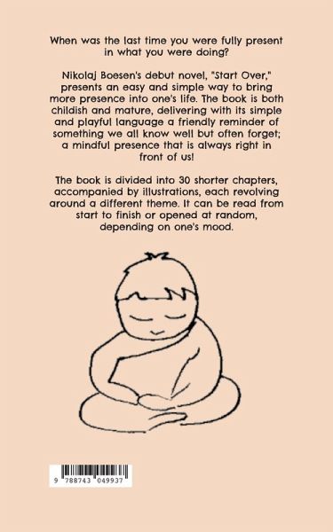 When was the last time you were fully present in what you were doing?Nikolaj Boesen's debut novel, "Start Over," presents an easy and simple way to bring more presence into one's life. The book is both childish and mature, delivering with its simple and playful language a friendly reminder of something we all know well but often forget; a mindful presence that is always right in front of us!The book is divided into 30 shorter chapters, accompanied by illustrations, each revolving around a different theme. It can be read from start to finish or opened at random, depending on one's mood.