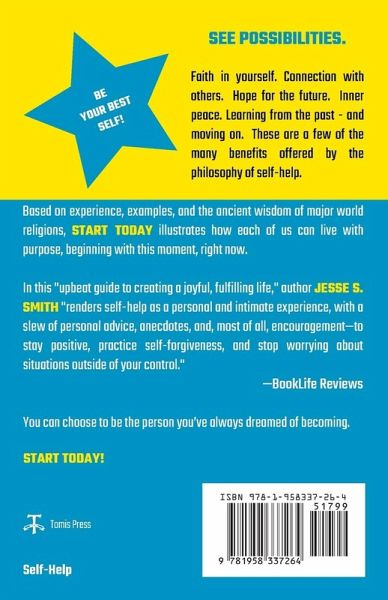 "Smith renders self-help as a personal and intimate experience, with a slew of personal advice, anecdotes, and, most of all, encouragement-to stay positive, practice self-forgiveness, and stop worrying about situations outside of your control. He speaks to readers in gentle, casual tones, never losing sight of his rosy outlook-even when addressing weighty topics like end-of-life events and toxic emotions. ... [An] upbeat guide to creating a joyful, fulfilling life." -BookLife Reviews Improving the conversation you have with yourself can help you to improve your relationships with others, and set you on the path to achieving a more fulfilling life. Start Today offers a vision of self-help as a personal philosophy, which shares many of its timeless precepts with major world religions from Christianity to Buddhism. In his personal, conversational writing style, author Jesse S. Smith describes the simple decisions that any of us can choose to make, at any time, to get our lives onto the best possible path. After his own journey to rock bottom and back, Smith embarked on an inspiring series of life adventures: including campaigning for public office, working on a movie crew, traveling abroad, and much more! When you begin to believe that anything is possible, then you become unstoppable. Based on Smith's own personal experience, as well as a number of case studies drawn from the lives of the author's personal and musical heroes, Start Today illustrates how each of us can live with purpose, beginning with this moment, right now. Whatever change you're ready to make in your life, you can start today. It all begins when we make that choice. We can choose how we focus our attention, and how we direct our efforts. It's a choice we can continue to make, at every moment of every day. Start today!