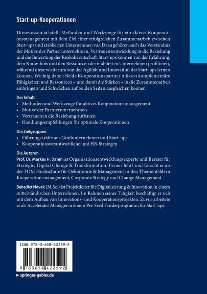 Dieses essential stellt Methoden und Werkzeuge für ein aktives Kooperationsmanagement mit dem Ziel einer erfolgreichen Zusammenarbeit zwischen Start-ups und etablierten Unternehmen vor. Dazu gehören auch das Verständnis der Motive der Partnerunternehmen, Vertrauensentwicklung in die Beziehung und die Bewertung der Risikobereitschaft. Start-ups können von der Erfahrung, dem Know-how und den Ressourcen der etablierten Unternehmen profitieren, während diese wiederum von der Agilität und Innovation der Start-ups lernen können. Wichtig dabei: Beide Kooperationspartner müssen komplementäre Fähigkeiten und Ressourcen - und damit die Stärken - in die Zusammenarbeit einbringen und Schwächen auf beiden Seiten ausgleichen können