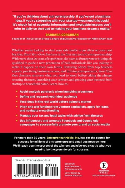 Streamlined, revised, and updated with the essentials to address today's business environment, this 8th edition of the bestselling startup of all time guides new business owners and serial entrepreneurs alike on how to plan, market, and maximize profits during the first three years. Revised throughout with updated information on technology and the implications of the new tax code, readers uncover what they need to know before taking the plunge, securing finances, launching their venture, and growing their business for the long haul.