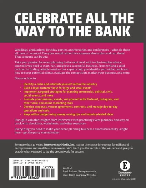 Take your passion for event planning to the next level with in-the-trenches advice and tools you need to start, run, and grow a successful business. From writing a solid contract to finding reliable vendors, our experts help you identify your niche, teach you how to scout potential clients, evaluate the competition, market your business, and more.