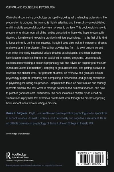 Clinical psychology is a quickly growing profession, yet it is a challenging one: the preparation is arduous, the training is highly selective, and the results - an established and financially successful practice - are not easy to achieve. This book explains how to prepare for and surmount all of the hurdles presented to those who hope to eventually develop a lucrative and rewarding practice in clinical psychology. It is the first of its kind to focus primarily on financial success, though it does also look at the personal stresses and rewards of the profession. The author provides tips from his own experience and from other financially successful private practice psychologists and offers business techniques and pointers that are not explained in training programs. Undergraduate students contemplating a career in psychology will find advice on preparing for the GRE, applying to graduate schools, and getting involved in research and clinical work. For graduate students, an overview of a graduate clinical psychology program, preparing and completing a dissertation, and gaining experience in psychological testing are provided. Chapters then focus on how to build and manage a private practice, the best ways to manage personal and business finances, and how to practice good self-care. Additionally, the book includes a chapter by an expert on student-loan repayment that examines how to best work through the process of paying back student loans while building a practice.