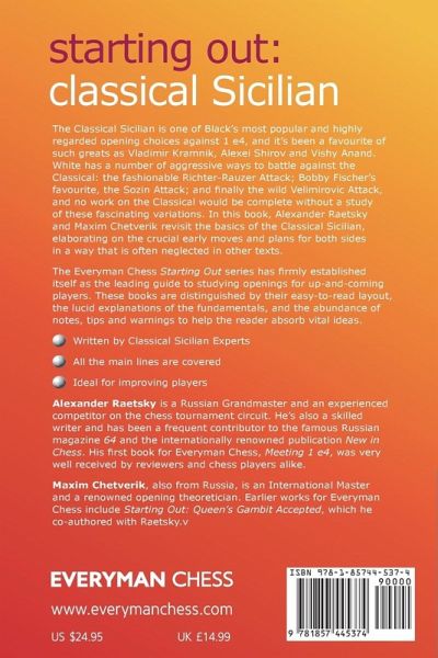 The Classical Sicilian is one of Black's most popular and highly regarded opening choices against 1 e4. Part of the "Starting Out" series, this book revisit the basics of the Classical Sicilian, discussing the crucial early moves and plans for both sides.
