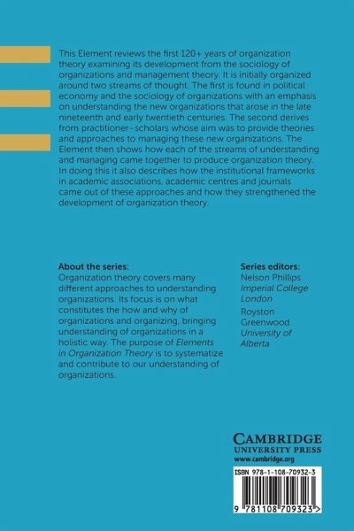 This Element is for all those interested in the development of organization theory and its relevance to today. It is particularly aimed at graduate students and advanced undergraduates but it is relevant to all of those who wish to understand the trajectory of this important subject.