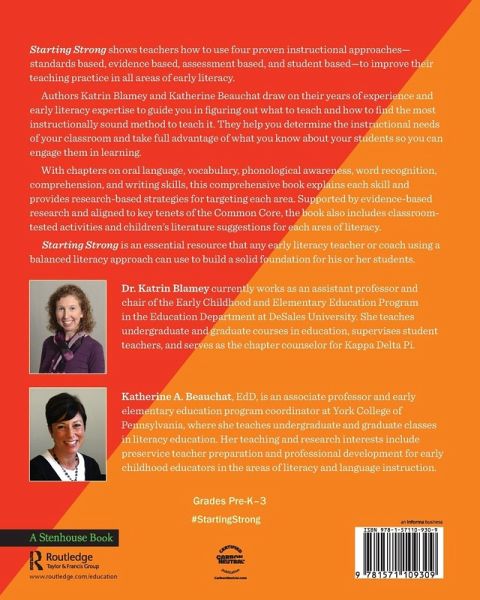 Starting Strong: Evidence-Based Early Literacy Practices shows teachers how to use four proven instructional approachesâ standards based, evidenced based, assessment based, and student basedâ to improve their teaching practice in all areas of early literacy.