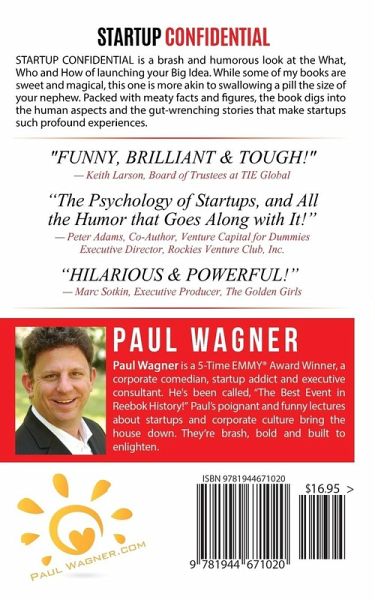 STARTUP CONFIDENTIAL is a brash and humorous look at the What, Who and How of launching your Big Idea. Written by EMMY® Award Winning comedian and startup addict Paul Wagner, this book is funny and intense, akin to swallowing a pill the size of your nephew. Packed with meaty facts and figures, the book digs into the human aspects and the gut-wrenching stories that make startups such profound experiences. There is no other book like this one anywhere. It's a game-changer. Paul Wagner is a startup and executive consultant. He's been called, "The Best Event in Reebok History!" Paul's poignant and funny lectures about startups and corporate culture bring the house down. They're brash, bold and built to enlighten. Visit StartupConfident.com and CreativeLab.TV to learn more.