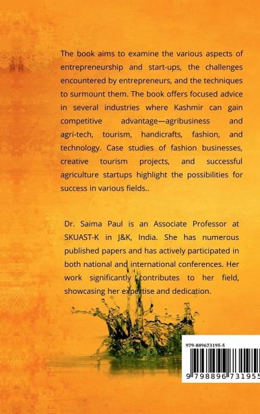 The book aims to examine the various aspects of entrepreneurship and start-ups, the challenges encountered by entrepreneurs, and the techniques to surmount them. The book offers focused advice in several industries where Kashmir can gain competitive advantage-agribusiness and agri-tech, tourism, handicrafts, fashion, and technology. Case studies of fashion businesses, creative tourism projects, and successful agriculture startups highlight the possibilities for success in various fields..