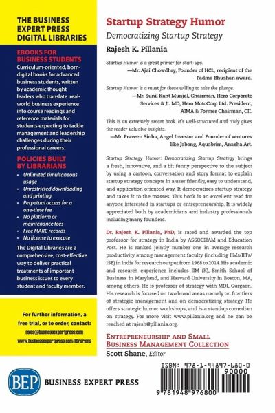 The purpose of this book is to make it simple and easy to understand startups-with an element of fun thrown in. Globally, "startups" are in vogue these days. In India too, the trend is catching up and the government is also encouraging startups. Though there is a growing interest in the subject and the number of startups is increasing, there is also a huge mortality rate of startups. Though interest in startups is increasing in India and many people want to go for startups, they stay away from startups for a number of reasons including the complexities involved and the concerns about possible failure. The purpose of this book is to make it simple and easy to understand startups-with an element of fun thrown in. This book explains 30 concepts related to startups in an innovative way. The author sincerely hopes to bring down the concepts of startups from ivory tower and to demystify and democratize startups for the masses.