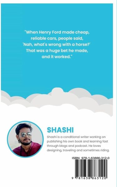 This book contains success stories of different- different successful startups in India along with their case studies. This book contains case study of Zomato, Zerodha, Ola, Oyo, Unacademy, Byju's and Swiggy. About author- Shashi was born in Aurangabad town of Bihar state, India. He is currently pursuing bachelor's in Journalism and mass communication from Chandigarh University.