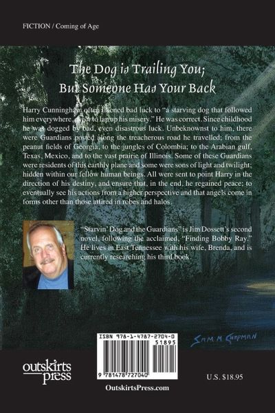 The Dog is Trailing You But Someone Has Your Back. Harry Cunningham was often heard to say that "Trouble followed him everywhere; like a starving dog, eager to lap up his misery." The metaphor was accurate; the slavering mutt shadowed him in many forms; death and betrayal, the most prominent. Despite Harry's abysmal luck, and suffering, he survives uncommon tragedies through many phases of his life in: Georgia; the Jungles of Colombia; on the Arabian Peninsula; Texas; Mexico; on the windswept prairies of Illinois. He searches for peace with the help of many: his adopted Hispanic family, and his beautiful Latina lover; a woman of German heritage possessing the joie de vivre that permeates everyone she touches; a cantankerous Jewish lawyer who experiences a sudden leap of intuitive understanding at her touch and her voice; a wily and benevolent entrepreneur who, despite his curmudgeon persona, possesses a heart of gold. They are all angels unaware, including Harry. However those most aware of their duties as guardians are beings of light, intermediaries between heaven and earth. Unbeknownst to Harry, these supernatural beings employ unorthodox tactics in an effort to protect him and guide him towards the higher life-form that he deserves.