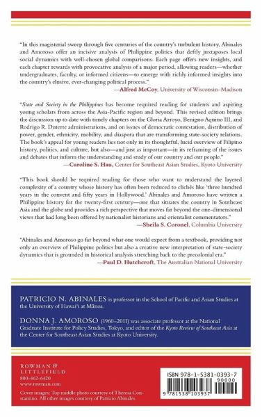 List of Boxes Foreword Preface to the Second Edition Preface to the First Edition Philippine Timeline Chapter 1: Introducing Philippine Politics Chapter 2: The Philippines in Maritime Asia to the Fourteen Century Chapter 3: New States and Reorientations, 1368-1764 Chapter 4: State and Societies, 1764-1898 Chapter 5: Nation and States, 1872-1913 Chapter 6: The Filipino Colonial State, 1902-1946 Chapter 7: All Politics Is Local, 1946-1964 Chapter 8: Marcos, 1965-1986 Chapter 9: Democratization, 1986-1998 Chapter 10: The Rise and Fall of "The Strong Republic" Chapter 11: Cacique Democracy Personalized Chapter 12: Neo-Authoritarianism? Glossary Bibliography Index
