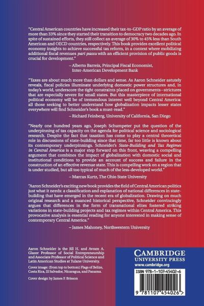 In Central America, dynamic economic actors have inserted themselves into global markets. Elites atop these sectors attempt to advance a state-building project that will allow them to expand their activities and access political power, but they differ in their internal cohesion and their dominance with respect to other groups, especially previously constituted elites and popular sectors. Differences in resulting state-building patterns are expressed in the capacity to mobilize revenues from the most dynamic sectors in quantities sufficient to undertake public endeavors and in a relatively universal fashion across sectors. Historical, quantitative and qualitative detail on the five countries of Central America are followed by a focus on El Salvador, Honduras, and Guatemala. The greatest changes have occurred in El Salvador, and Honduras has made some advances, although they are almost as quickly reversed by incentives, exemptions and special arrangements for particular producers. Guatemala has raised revenues only marginally and failed to address problems of inequity across sectors and between rich and poor.