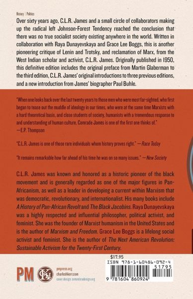 Over sixty years ago, C.L.R. James and a small circle of collaborators making up the radical left Johnson-Forest Tendency reached the conclusion that there was no true socialist society existing anywhere in the world. Written in collaboration with Raya Dunayevskaya and Grace Lee Boggs, this is another pioneering critique of Lenin and Trotsky, and reclamation of Marx, from the West Indian scholar and activist, C.L.R. James. Originally published in 1950, this definitive edition includes the original preface from Martin Glaberman to the third edition, C.L.R. James’ original introductions to three previous editions and a new introduction from James’ biographer Paul Buhle.