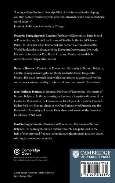 Part I. An Overview of Economic and Institutional Constraints on Benin's Development: 1. The spatial, historical and socio-political context Platteau; 2. Exploring the reasons behind modest economic performances Houssa-Reding; 3. Quality of institutions: lessons from quantitative and qualitative evidence Houssa-Bourguignon; Part II. A Deeper Investigation of Some Key Sectors and Institutions: 4. Campaign finance and state capture Ch, Hounkpe and Wantchekon, with discussion by Cruz; 5. The cotton sector: history of a capture Honfoga, Houssa, Dedehouanou, with discussion by Thériault; 6. The tax effort: a comparison between Sub-Saharan Africa and Benin Caldeira and Rota-Graziosi, with discussion by Médé; 7. The political economy of land reform Lavigne Delville, with discussion by Houngbedji; 8. The critical role of informal trading with Nigeria Golub-Mbaye, with discussion by Igué; Part III. Synthesis: 9. A patrimonial regime with multiple oligarchs Bourguignon-Platteau.