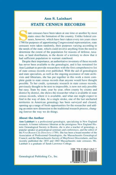 This inventory of state census records is the first comprehensive list of state census records ever published. State by state, year by year, often county by county and district by district, the author shows the researcher what is available in state census records, when it is available, and what one might expect to find in the way of data.